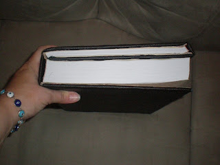 YAY!! It's finally done!! I actually completed it sometime last week, but I've had it sitting under some books and stuff to help it get it's shape. I actually had to take apart the back cover because I made the spine portion too big for the back part of the book. Now on to the pictures...